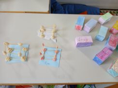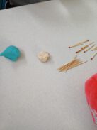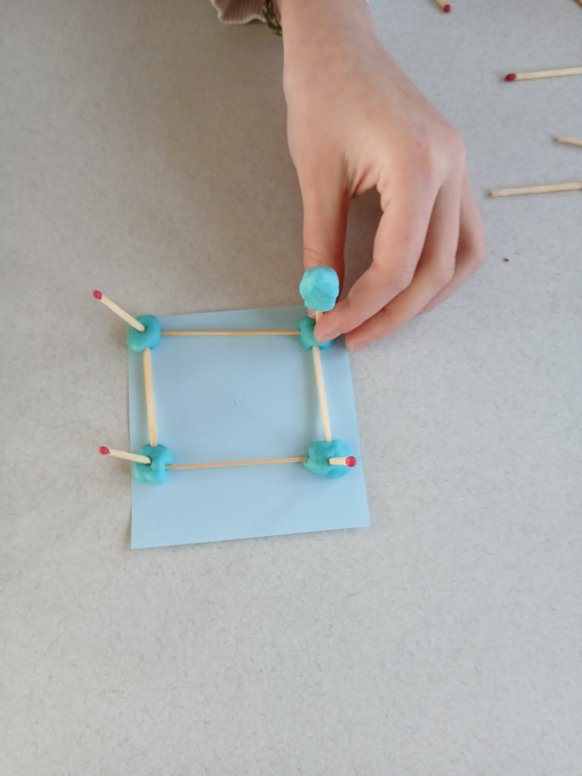 Mit selbst hergestellter Knete und Zahnstochern / Streichhözern bauen wir Quader. Oder versuchen es zumindest. Eine ziemlich wackelige und knifflige Aufgabe, die vieeel Geduld erfordert.