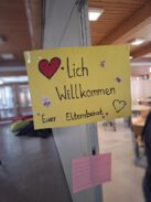 Gespannt und aufgeregt standen schon kurz vor dem offiziellen Beginn die ersten Eltern mit Ihren Kindern vor der Türe. Während die Erwachsenen in aller Ruhe die Formalitäten rund um die Anmeldung erledigten und sich dann entspannt bei Kaffee und kleinen Snacks des Elternbeirates (vielen Dank!) austauschen konnten – wenn sie sich nicht gerade noch einmal auf das Radl schwangen, um etwas Vergessenes schnell zu holen – wurden die Kinder von unseren Viertklässlern empfangen. Motiviert führten sie die „Neulinge“ ein wenig durchs Schulhaus und brachten sie dann zu einem Klassenzimmer. Dort durften unsere „Neuen“ dann in einer kleinen Gruppe das erste Mal „Unterricht“ schnuppern: Es wurden unter anderem kleine Mengen gelegt oder benannt, Wege eines Schmetterlings nachgefahren, Silben geklatscht. Zum Abschluss gab es für jedes Kind ein von unseren Schülern gebasteltes Haus: Darin kann man sehen, wie viele Tage es noch bis zum ersten Schultag sind. Ein großes Dankeschön an alle, die an diesem Tag unterstützten und somit einen schönen Nachmittag für unsere künftigen Schüler ermöglichten!
