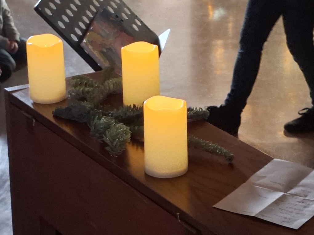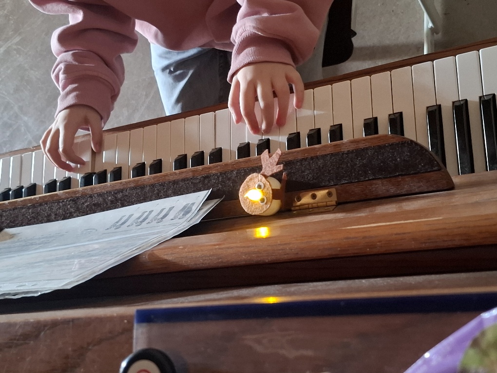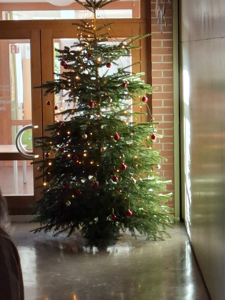 Kurz vor dem ersten Advent begannen wir, uns regelmäßig zum Weihnachtslieder-Singen in der Aula zu treffen. Leider mussten die meisten unserer geplanten „Adventsmontage“, an denen traditionsgemäß reihum jede Klasse eine einstudierte Überraschung vorführte und gemeinsam gesungen wurde, wegen Krankheit ausfallen. Dafür trafen wir uns aber alle am letzten Schultag: Wir sangen unsere Lieblingslieder, und es gab verschiedene Überraschungen: Die Religionsgruppe der 4b bei Herrn Wagner führte ein lustiges und zugleich nachdenklich stimmendes Weihnachtsstück auf: „Turbulenter Advent bei Familie Türauf“. Die Klasse 2a brachte uns das Gedicht vom Bratapfel mit, die Klasse 2b ein Lied, das sie mit Instrumenten begleiteten. 2 ganz mutige Schülerinnen gab es auch noch: Eine spielte ein Stück auf dem Klavier, eine andere auf der Flöte. Toll gemacht!