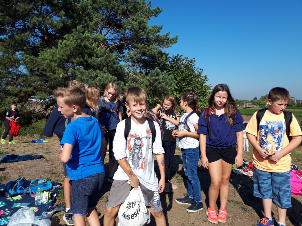 Im September nutzten wir den wunderschönen Spätsommer für unseren ersten Ausflug in diesem Jahr. Wir machten gemeinsam mit der Klasse 4b einen Wandertag nach Boxdorf. Der Fußweg dauerte nur 45 Minuten und wir erreichten unseren ersten Zwischenstopp. Der neu gestaltete Spielplatz in Boxdorf bot viel Gelegenheit zum Klettern, Rutschen, Hangeln und Toben. Nach einem Aufenthalt von einer halben Stunde wanderten wir weiter zum sogenannten Schwarzen Berg. Diese riesige Grünfläche nutzten wir für allerlei Spiele und vor allem für unser Picknick. Wir machten es uns auf unseren Picknickdecken gemütlich und genossen die schöne Herbstsonne. Nach einem ausgiebigen Essen und verschiedenen Spielen ging es wieder auf den Heimweg Richtung Großgründlach. Eine kurze Pause mit Eis versüßte uns die Strecke. Was für ein schöner Herbsttag!